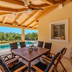 Von einer Terrasse der Unterkunft in Brisevo aus können Gäste einen Ausblick auf den Pool genießen.